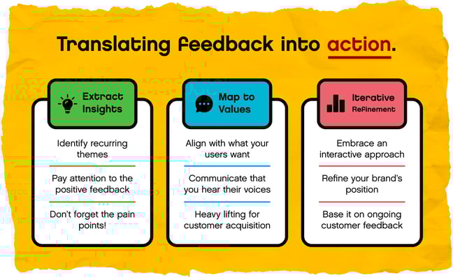 Start by identifying recurring themes. Patterns don't lie, they say. The recurring themes are the signposts that point toward the things that actually matter to your customers. Pay attention to the positive feedback, and pay attention to the pain points. The pain points especially. They're the gems waiting to be polished into treasure.